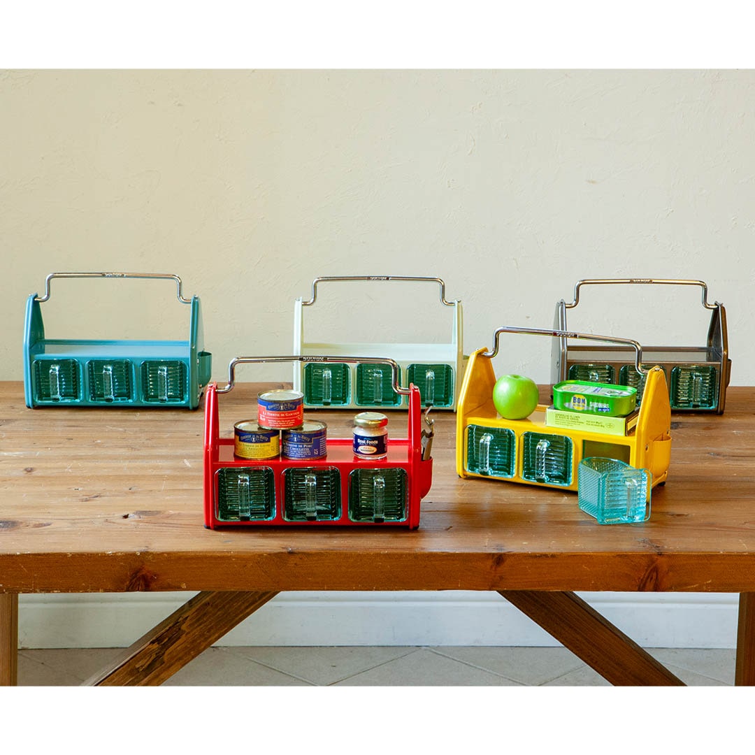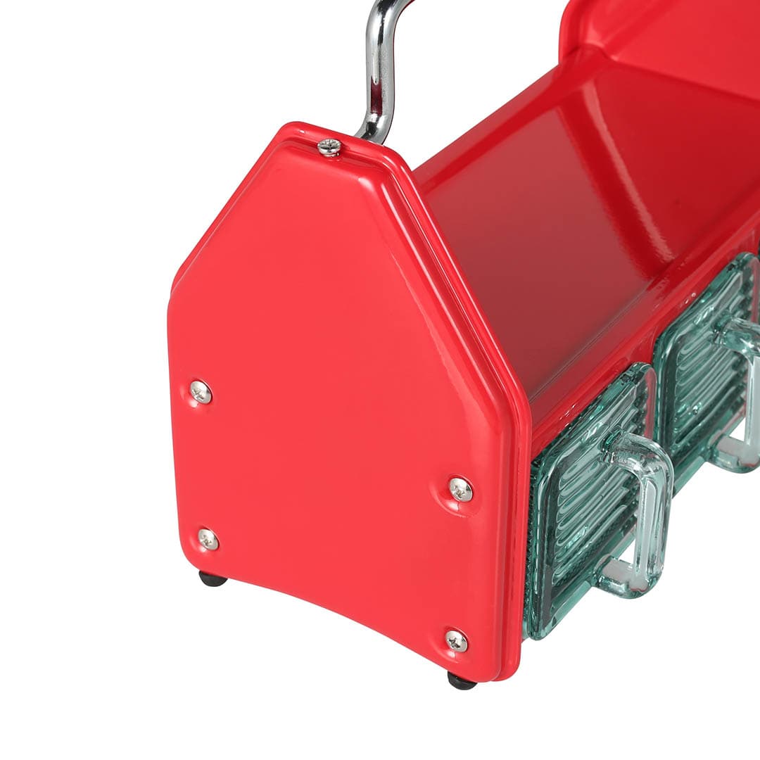 放置在廚房可裝取調味料等物品,也可至於餐桌上放置水杯、牙籤等常用物品,不僅賞心悅目且實用,不限於商用空間與家用,是個很萬用的架子,美式復古配色搭配玻璃容器與提把,精緻出眾,放哪都會好看,非常適合美式風格的空間,提升桌面的整潔同時扮演裝飾的角色。
